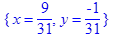 > msolve({3*x-4*y=1,7*x+y=2},11);