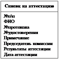 Принцип работы такой же как и в форме «Вызов на аттестацию» особенностью данной формы является то, что она строится на основе списка созданного в форме «Вызов на аттестацию», добавляются лишь поля: Результат Аттестации, № протокола, № удостоверения. Получаем список следующего вида