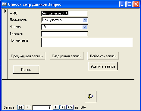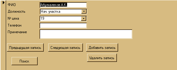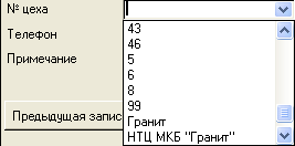 Аналогично выбирается его номер(название) цеха 4. Если существует необходимость можно добавить данные в поля