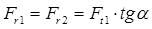 Схема установки подшипников – врастяжку. Суммарные радиальные реакции опор: