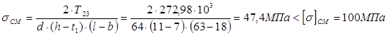 Что больше 8. Проверка прочности шпоночных соединений Расчет проводим по напряжениям смятия: