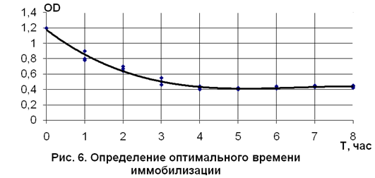 Полученные таким путем образцы материала обладают повышенной активностью (рис. 3), которая примерно в 1,5 раза больше, чем у свободных клеток активного ила (рис. 4). Преимущество этого метода в том, что он позволяет проводить закрепление бактерий на гидроксиде уже после его отмывки от избыточной щелочи, избегая влияния высоких рН на жизнеспособность клеток.