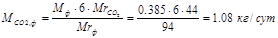 Qсут = Qвозд ·24·3600=19751,04 м3/с. 2. Поскольку данные о наличии в поступающей сточной воде других загрязняющих веществ, а именно соединений азота и фосфора, отсутствуют, считаем, что их содержание находится на уровне, достаточном для развития микроорганизмов. 3. Материальный баланс жидкой фазы. Процесс полного окисления загрязняющих веществ происходит в соответствии с уравнениями: Фенол: C6 H5 OH + 7O2 -6CO2 + 3H2 O Нефтепродукты (в пересчете на С15 ): C15 H32 + 23O2 -15CO2 + 16H2 O Считаем, что количество образовавшейся биомассы незначительно, и весь субстрат целиком превращается в продукт. Массовый расход поступающих загрязнений: Mф.п =Gсут ·Сф =7000·0,056·10-3 =0,392 кг/сут MНП.п =Gсут ·СНП =7000·3·10-3 =21 кг/сут Массовый расход сбрасываемых загрязнений: Mф.с =Gсут ·ПДКф =7000·0,001·10-3 =0,007 кг/сут MНП.с =Gсут ·ПДКНП =7000·0,05·10-3 =0,35 кг/сут Массовый расход разложившихся загрязнений: Mф = Mф.п - Mф.с =0,392-0,007=0,385 кг/сут MНП = MНП.п - MНП.с =21-0,35=20,65 кг/сут Тогда по уравнениям реакций получаем следующие массовые расходы веществ: