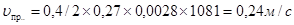 Секция регенерации : а) скорость движения продукта на входе в секцию: