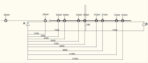 По правилу Винклера, чтобы определить максимальный изгибающий момент, необходимо расположить краны так, чтобы середина балки находилась между колесом крана и равнодействующей R. Передвигаем краны соответствующим образом и определяем Mmax