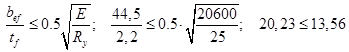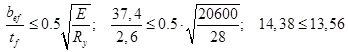Определяем сечение ребер жесткости по конструктивным требованиям норм: