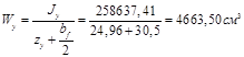 Момент инерции сечения брутто (имеющие в верхнем поясе отверстия для крепления рельса можно не учитывать ввиду незначительного их влияния на прочность сплошных сварных балок)