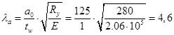 Определяем критические напряжения для стенки опорного отсека при отношении