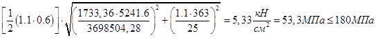 Проверку нормальных напряжений в верхнем поясе проводят по формуле: