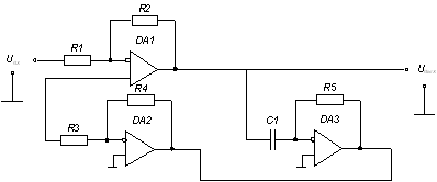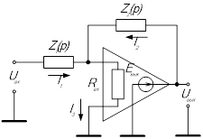 Рисунок 2.1 – Принципиальная схема звена, реализованного на операционных усилителях Идеальная передаточная функция такого звена имеет вид
