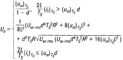 Найдем условие, при котором происходит переход из режима непрерывного тока в режим разрывного тока. Подставив в условие (9) выражение для пульсаций тока (7) и регулировочную характеристику (16), получим: