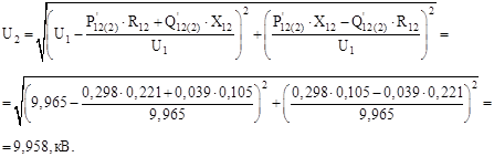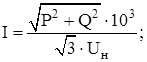 где Р – это значение активной мощности на каждом из участков сети, кВ∙А; Q – значение реактивной мощности протекающей по каждому из участков сети, кВар; Uн – номинальное напряжение сети, кВ.