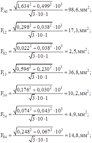 Определим сечение провода на каждом из участков сети по следующей формуле: