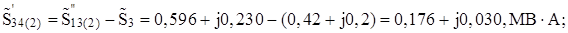 Так как погрешность по действительной и мнимой части не превышает 5%, следовательно расчёт выполнен верно. Сложим найденные мощности (4.4) с мощностями, полученными в п. 3. В результате получим потокораспределение в послеаварийном режиме работы сети: