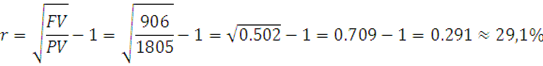 Задача 3 Финансовый менеджер предприятия предложил Вам инвестировать Ваши $1805,000 в его предприятие, пообещав возвратить Вам $906,000 через два года. Имея другие инвестиционные возможности, Вы должны выяснить, какова процентная ставка прибыльности предложенного вам варианта. Решение