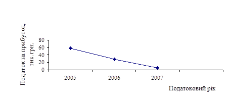 Рис. 2.1. Динаміка сплати податку на прибуток на підприємстві ЗАТ СП “Теріхем-Луцьк” Отже, проведений нами аналіз показав, що підприємство ЗАТ СП “Теріхем-Луцьк” є прибуткове, проте прослідковується динаміка до зменшення його прибутковості, що є негативним явищем. Прибутковість виробництва товарів зростає. Але прослідковується зменшення інших доходів. Все це може свідчити про приховану податкову політику підприємства. 2.2 Факторний аналіз прибуткотівої діяльності підприємства Факторний аналіз – це методика комплексного системного вивчення і виміру впливу факторів на величину результативних показників. Одним з прийомів проведення факторного аналізу являються прийоми елімінування. Елімінувати – це значить усунути, виключити вплив віх факторів на величину результативного показника, крім одного. Таблиця 2.2Факторний аналіз прибутку, (тис. грн.)
