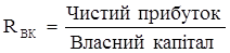 Цей показник рентабельності зазначає пріоритети інвестування тимчасово вільних коштів або ефективного залучення капіталу. Показник рентабельності власного капіталу (RВК) є найбільш важливою характеристикою діяльності підприємства з точки зору його акціонерів (власників). Цей показник визначається як співвідношення чистого прибутку і власного капіталу: