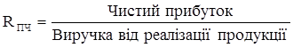 Чисту рентабельність продажу (RПЧ), показує, скільки прибутку надходить підприємству в кожній гривні від продажу продукції, товарів, робіт, послуг і визначається співвідношенням: