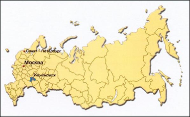 Рисунок 6.Ульяновская область на карте России Уменьшение площадей пашни в Курганской и Ульяновской областях, по-видимому, можно объяснить тем, что обе эти области расположены на территориях, где интенсивно происходит загрязнение почвы химическими поллютантами, внесение чрезмерного количества средств химизации и, как следствие, снижение почвенного плодородия (рис 5,6). В других областях, где продолжается, хотя и менее интенсивно, процесс уменьшения количества пахотных земель также связано, по-видимому, с острой экологической ситуацией. Заключение Агроэкологический мониторинг является важной составляющей частью ЕГСЭМ. Благодаря сведениям, получаемых в результате работы этой системы, можно выявить негативные процессы и явления, протекающие в агроэкосистемах, установить их причины и своевременно остановить их дальнейшее развитие. При слаженной работе системы агроэкологических наблюдений процесс выявления нарушения, принятия решения по его устранению и реализация мероприятий на практике дает хорошие и своевременные результаты. В России на данный момент целостной системы наблюдения и контроля за состоянием агроценозов нет: · информация не всегда точна и своевременна; · несмотря на обилие всевозможной информации, отсутствует структура быстрого принятия решений и своевременного устранения источника негативного воздействия и самого воздействия; · отдельные этапы проведения агроэкологического мониторинга не всегда согласованы между различными структурами, осуществляющими их. Поэтому получаемые данные не всегда состыковываются. В ходе работы было выявлено, что наиболее сложная экологическая обстановка - на территории юга России, в черноземной зоне. Был проведен анализ изменения площадей пашни в южных регионах России. На его основе можно сделать вывод о том, что наблюдается связь между сокращением числа пахотных площадей и загрязнением окружающей среды. В районах с острой экологической ситуацией загрязненные и нарушенные земли все меньше используются для нужд сельского хозяйства. Для черноземных почв юга России эта проблема имеет наиболее острый характер. Поэтому именно этот регион нуждается в проведении наиболее тщательного контроля за состоянием агроценозов и почв в частности, в разработке мер по снижению антропогенной нагрузки на эти земли. В этом регионе необходимо осуществлять не только стационарные наблюдения, но и маршрутный мониторинг периодичностью 1-3 раза за вегетационный период для наиболее репрезентативного отражения динамики и скорости развития негативных процессов. Тогда, возможно, меры по снижению конкретных антропогенных нагрузок на определенные агроландшафты будут приниматься быстрее и эффективнее, что в последствии действительно приведет к более эффективному управлению агроэкосистемами. Список использованной литературы 1. В. А. Черников, Р. М. Алексансин, А. В. Голубев и др. Агроэкология. Москва, Колос 2000. 2. Защитное лесоразведение в Среднем Поволжье: Материалы Всероссийской научно-практической конференции, посвященной 75-летию Поволжской агролесомелиоративной опытной станции, п. Березки Самарской обл., 23 – 24 июня 2005 г. / ВНИАЛМИ. – Волгоград, 2005 3. Статистические материалы и результаты исследований развития АПК России, М., РАСХН, 2006 4. Государственный (национальный) доклад о состоянии 