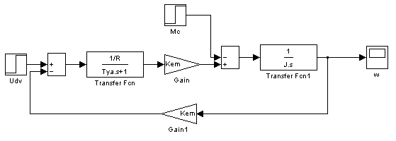 Рисунок 11.1 – Структурная схема двигателя Из структурной схемы можно получить передаточные функции двигателя относительно круговой частоты вращения или тока: