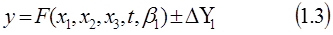 де у – характеристика об’єкта дослідження, який вивчається; х1, х2 ,х3, t – координати простору і часу; a 1 , a 2 ,…, ai – параметри, що визначають протікання процесу і залежність від форми матерії, її стану стану і структури. Кількість таких параметрів безмежно велика в силу безмежності світу, взаємо обумовленості і взаємозв’язків його складових. Параметри можна представити як елементи безмежної множини А , тобто аі є А . За степенем впливу на величину у параметри аі умовно можна розподілити на класи – неперетинні під множини Ві є А ( I = 1, 2,…) . Підмножина В1 об’єднує параметри, які найбільш сильно впливають на хід процесу, - параметри першого рівня; в підмножину В2 входять параметри, які діють на хід процесу менше, це параметри другого рівня і т. д. Наприклад, коливання маятника малої амплітуди визначаються його довжиною і прискоренням вільного падіння g. До параметрів другого рівня можна віднести повітря і його в’язкість, розподіл маси маятника. До третього рівня можна було б віднести інтенсивність електромагнітного поля, розподіл оточуючих мас, вологість середовища тощо. З урахування вище зазначеного залежність [1.1] можна записати у вигляді: