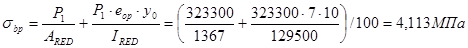 Втрати від перепаду температури між арматурою, що натягнена і упорами σ2 =0, так як при пропарюванні форма з упорами нагрівається разом з виробом. Зусилля обтиску