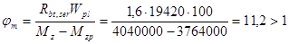 Відношення напруження в бетоні від нормативних навантажень та зусилля обтиску до розрахункового опору бетону для граничних станів другої групи спочатку приймають рівним 0,75. Упругопластичний момент опору в розтягненій зоні: