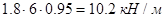 від стійки (перерізом 0,3х0,3; l=4,8; ρ=2500кг/м3 ; γf =1,1;γn =1- 10,1кН. Всього 110,3+ 17,7+10,1= 138,1кН. Тимчасове навантаження від перекриття одного поверху з врахуванням γn =0.95