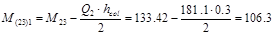 Відповідно, розрахунковий опорний момент ригеля по грані середньої колони М =121,7 кН. м. Опорний момент ригеля по грані крайньої колони по схемі завантаження 1+4 і вирівняній епюрі моментів: