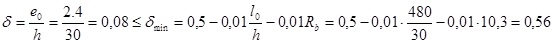Підбір перерізу симетричної арматури Аs = А`s. Робоча висота перерізу