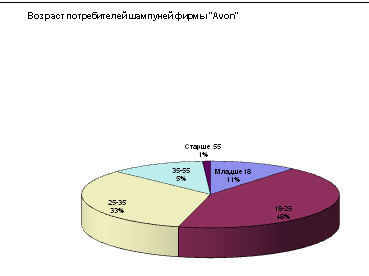 Из диаграммы 1 видно: 1. 48% потребителей шампуней относятся к возрастной группе от 18 до 25 лет, которую можно разделить на подгруппы. Студенты. Это молодые, в большинстве своем аккуратные, ухаживающие за собой, находящиеся всегда в центре внимания люди. Большое влияние при выборе шампуней на них оказывают реклама. Из всех видов рекламы на эту группу потребителей наибольшее влияние оказывает реклама по каталогам фирмы «Avon» Цель приобретения – всегда быть ухоженным, аккуратным. Покупатели этой группы предпочитают товар с хорошим качествам. Такие же факторы, как цена и практичность, особой роли не играют. Можно предположить, что покупатель отдаст предпочтение шампуню известной марки, даже если цена его превышает цену товара с аналогичными качествами, но менее известной. Наиболее популярными марками среди потребителей данной группы являются следующие: «Advance Techniques» 250 (для ежедневного ухода, для вьющихся волос, для придания волосам гладкости и блеска, для окрашенных волос)/ Основными пожеланиями, которые высказывались в данной группе потребителей, были следующие. Улучшить качество, добавляя различные витамины полезные для волос, производить шампуни с экстрактами различных трав. Многие потребители высказывали предложения об обновлении дизайна. 2. Следующей по величине группой потребителей дезодоранта является возрастная группа от 25 до 35 лет (33%). В эту возрастную группу вошли женщины и мужчины с высшим образованием или работающие на постоянной основе, достигшие высот, работающие с людьми, которым необходимо быть опрятными, аккуратными, ухоженными. Это энергичные люди, заботящиеся о приобретении и повышении статуса. При покупке шампуни они могут ориентироваться как на рекламу, так и на советы друзей, коллег. Данная группа лиц приобретает товар из соображения практичности. Наиболее популярными марками среди потребителей данной группы являются следующие: Шампуни «Advance Techniques» 250 (для ежедневного ухода) Шампуни «Advance Techniques» 750 (шампунь / ополаскиватель для волос 2 в 1 «Здоровое сияние») Шампуни «Naturals» 400/ 3. 11% потребителей шампуни относятся к возрастной группе младше 18 лет. Выводы относительно предпочтений данной подгруппы были подростки. Это жизнелюбы, экспериментаторы. Их мотивы и поведение при покупке продуктов парфюмерии в большой степени схожи с поведением потребителей первой рассмотренной группы. Наиболее популярными марками среди потребителей данной группы являются следующие: Шампуни «Naturals» 200, «Advance Techniques» 250. Предложения производителям шампуней в этой группе потребителей аналогичны тем, что выдвигались первой группой. 4. Следующая группа потребителей шампуней незначительна от 35 до 55 лет (5%) и старше 55 лет (1%). Эти группы можно объединить в одну группу старше 35 лет. Данная группа людей, в основном, пользуется шампунями других производителей, продаваемых в магазинах, в мелких торговых точках. Выбирая шампуни, в первую очередь, смотрят состав шампуней, экстракт трав, витамины. А так как шампуни фирмы «Avon» заказываются по каталогам, состав невозможно посмотреть. 6. Исследование конкурентов Конкурентом фирмы Avon является фирма Oriflame, проведем поверхностное сравнение цен и потребительских качеств товара. Avon