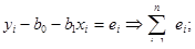 Выражение (3.14) дает нам, во-первых, подтверждение того, что сумма ошибок равна нулю. Таким образом,