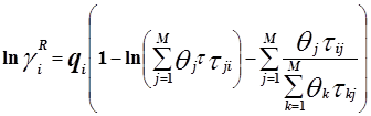 Rk – параметр объема для функциональной группы k ; Qk – параметр площади для функциональной группы k ; xi – мольная доля компонента i в жидкой фазе. Параметры группового объема и площади определяются из атомной и молекулярной структуры: