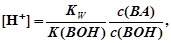 следовательно, . Последняя формула доказывает, что при разбавлении БР его рН не изменяется, так как при этом меняются только значения с(НАn) и с (МАn), а их соотношение сохраняется. Аналогично для БР, состоящего из слабого основания ВОН и его соли ВА, можно получить