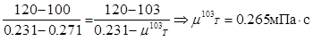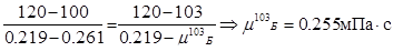 υБ , υТ – мольные объемы бензола и толуола, A=B=1 – коэффициенты. Вязкость жидкости при t=200 С в верхней и нижней частей колонны: а) в верхней части колонны: