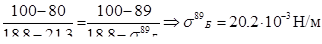 Рассчитаем поверхностное натяжение воды при tср.в. =890 С и tср.н. =1030 С интерполяцией с использованием справочной информации по поверхностному натяжению воды [11]: · Поверхностное натяжение воды при tср.в. =890 С: При t=800 С→σв =62.6·10-3 Н/м; при t=1000 С→σв =58.9·10-3 Н/м