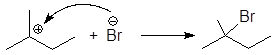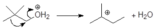 Это реакция кислотно катализируемого замещения спиртов. Она проходит по механизму SN 1, характерному для третичных спиртов. Важной характерной особенностью процессов с участием карбокатионов являются перегруппировки, и поэтому замещение гидроксильной группы спиртов на галоген под действием галогеноводородов без изомеризации осуществляется только для третичных и неразветвленных первичных спиртов. Перегруппировки происходят и со спиртами с разветвлением у b-атома углерода. При обработке неопентилового спирта бромоводородной кислотой образуется продукт перегруппировки: