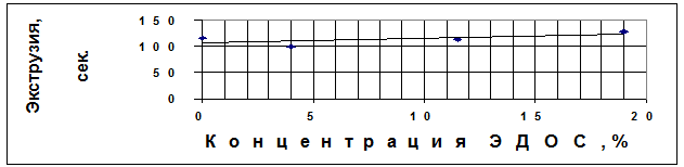 Поэтому в качестве пластификатора была исследована смесь ДОФ и ЭДОС и найдено оптимальное её соотношение 19:1, которое улучшает не только технологические свойства пластизоли, но и улучшает физико-механические (относительное удлинение, прочность при разрыве) (табл.3), практически не ухудшая другие показатели материала (рис.2,3). Свойства ПВХ-пластизоли Таблица 3