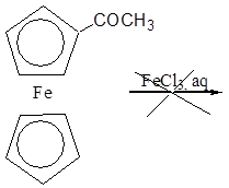 Хлористое олово было взято в избытке для максимально выхода ферроценй-катиона. После окисления ферроцений перешёл в водный раствор, о чём можно судить по синевато-зелёной окраске водного слоя после отделения его от эфирного. Так как электроноакцепторные заместители в кольцах ферроцена затрудняют его окисление, ацетилферроцен не был окислен в тех же условиях, что незамещённый ферроцен: