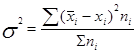 Где - средние по отдельным группам; nj -численности по отдельным группам. Внутригрупповая дисперсия отражает случайную вариацию, т.е. часть вариации, происходящую под влиянием неучтенных факторов и не зависящую от признака-фактора, положенного в основание группировки. Она исчисляется следующим образом: