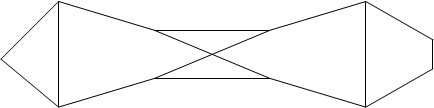 Рис.6. Утверждение о не существовании “положительного” решения у этой задачи эквивалентно утверждению о невозможности обойти специальным образом граф, представленный на рисунке 6. Отправляясь от этого частного случая Эйлер обобщил постановку задачи и нашёл критерий существования обхода у данного графа, а именно граф должен быть связным и каждая его вершина должна быть инцидентна чётному числу рёбер.[6] Решение Эйлером задачи о Кёнигсбергских мостах привела к первой опубликованной работе по теории графов. Задачу об обходе мостов можно обобщить и получить следующую задачу теории графов: можно ли найти в данном графе G цикл, содержащий все вершины и все рёбра? Граф, в котором это возможно, называется эйлеровым. Таким образом, эйлеров граф имеет эйлеров цикл – замкнутую цепь, содержащую все вершины и все рёбра. Ясно, что эйлеров граф должен быть связным.[6] Если снять ограничения на замкнутость цепи, то граф называется полуэйлеровым. Теорема 1(критерий): Граф с более чем одной вершиной имеет эйлеров цикл тогда и только тогда, когда он связный и каждая его вершина имеет чётную степень. Доказательство: Предположим, что граф G имеет эйлеров цикл. Граф является связным, так как каждая вершина принадлежит циклу. Для всякой вершины v графа G каждый раз, когда эйлеров цикл проходит через v , он вносит 2 в степень v . Поэтому степень v чётная. Обратно, нужно показать, что каждый связный граф, у которого степени вершин чётные, имеет эйлеров цикл. Докажем эту теорему, используя индукцию по числу вершин. Поскольку теорема тривиально справедлива при n£3, начнём индукцию с n=3. Предположим, что каждый связный граф, имеющий менее k вершин, и все вершины которого обладают чётной степенью, содержит эйлеров цикл. Пусть G – связный граф, содержащий k вершин, степени которых чётные. Допустим, что v 1 и v 2 - вершины графа G. Поскольку граф G – связный, существует путь из v 1 в v 2 .Поскольку степень v 2 – чётная, существует неиспользованное ребро, по которому можно продолжить путь. Поскольку граф конечный, то путь, в конце концов, должен вернуться в v 1 , и эйлеров цикл С1 можно считать построенным. Если С1 является эйлеровым циклом для G, тогда доказательство закончено. Если нет, то пусть G/ - подграф графа G, полученный удалением всех рёбер, принадлежащих С1 . Поскольку С1 содержит чётное число рёбер, инцидентных каждой вершине, каждая вершина подграфа G/ имеет чётную степень. Пусть e – ребро графа G/ , пусть Ge – компонента графа G/ , содержащая е. Поскольку G/ имеет менее, чем k, вершин, и у каждой вершины графа G/ чётная степень, граф G/ имеет эйлеров цикл. Пусть С2 . Далее у С1 и С2 имеется общая вершина, допустим, а. Теперь можно продолжить эйлеров цикл, начиная его в а, пройти С1 , вернуться в а, затем пройти С2 и вернуться в а. Если новый эйлеров цикл не является эйлеровым циклом для G , продолжаем использовать этот процесс, расширяя наш эйлеров цикл, пока, к конце концов, не получим эйлеров цикл для G .[1] Из теоремы 1 следует, что если в связном графе G нет вершин с нечётными степенями, то в G есть замкнутая цепь, содержащая все вершины и все рёбра графа G. Аналогичный результат справедлив для связных графов, имеющих некоторое число вершин с нечётными степенями. Следствие 1(а): Пусть G- связный граф, в котором 2n вершин имеют нечётные степени, n>1. Тогда множество рёбер графа G можно разбить на n открытых цепей. 