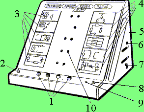 Большинство контролирующих устройств электромеханического типа слишком дороги, обеспечивают лишь выборочный способ ввода ответов и плохо приспособлены для помощи учителю в управлении процессом обучения, они предназначены скорее для индивидуализированной самостоятельной работы вне аудитории и для заключительного контроля. Значительно более приспособлены для классно-урочной работы комплекты устройств оперативной обратной связи коллективного пользования - автоматизированные классы (АК), не совсем верно называемые иногда классами программированного обучения. Хотя в некоторых конструкциях этих классов и осуществляется контролируемое обучение по программированным материалам, основное их назначение - активизация умственной деятельности учащихся в процессе изучения нового материала, организация фронтальной работы по проверке домашнего задания и по закреплению проработанного материала, а также организация управления индивидуализированной самостоятельной работой учащихся. Существуют - различные конструкции АК, обеспечивающие выполнение разного набора дидактических функций. Некоторые из них уже начали выпускаться серийно (например, "Львов-2"), другие без больших затрат могут быть изготовлены в школьных мастерских, например "Николаев-10" Среди различных режимов проведения занятий в А К особое внимание привлекает самостоятельная работа над индивидуализированными заданиями учебно-тренировочного характера, в том числе над разветвленными программированными материалами. В АК эта работа проводится так: перед началом самостоятельной работы учитель сообщает всем учащимся сведения, необходимые для ее выполнения. (Часть этих сведений, впрочем, может быть включена в текст заданий.) Затем каждый получает свой вариант задания. Число вариантов таких заданий в АК описываемой конструкции может быть любым, обычно ограничиваются шестью вариантами. Так как рабочие места можно закрепить за определенными учениками, задания могут быть дифференцированы в соответствии с индивидуальными особенностями учеников по трудности и оформлению. Приступив к работе, ученики по мере выполнения упражнений вводят числовым кодом свои ответы в свои пульты, и уже через несколько минут на ЦП учителя возникает своеобразная световая столбчатая диаграмма выполнения задания коллективом всего класса в динамике. (Естественно, что каждый ученик работает в наиболее доступном ему темпе, причем оборудование обеспечивает поэтапную оперативную внутреннюю обратную связь.) Следя за индикацией, учитель видит, кто из учеников в каждый данный момент занятия нуждается более других в его педагогическом воздействии - совете, консультации, внушении и т. п. Вызывая с помощью специальной сигнализации ученика к себе или подойдя к нему непосредственно, учитель устраняет причины отставания данного ученика и переходит к помощи другому. Интенсивность работы как учеников, так и учителя значительно повышается, одновременно повышается и "коэффициент ее полезного действия". Сразу же в конце занятия учитель может подвести его итоги, выставить оценки, отставшим дать дополнительное задание домой и т. д. Более полная информация, которую можно использовать не только для текущей оценки успеваемости, но и для сбора количественной информации об экспериментальной работе, м