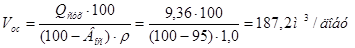 де: Вос - вологість осаду, Вос = 95%
