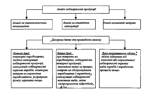 Рис. 1.1. Класифікація об'єктів аналізу Схема аналізу собівартості продукції і джерела їх даних для проведення аналізу зображено на рис. 1.2.