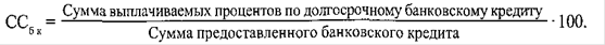 Если вся сумма процентов, выплачиваемых по банковскому кредиту, относится в уменьшение налогооблагаемой прибыли, то цена долгосрочного банковского кредита может быть определена из выражения