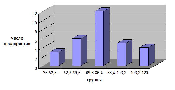 Рис. 3.1. Динамика выпуска продукции по группам предприятий 2. В соответствии с таблицей 3 построим график полученного ряда распределения.