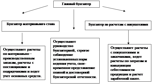 Бухгалтерский и налоговый учет ведется бухгалтерией ООО «Уральский лес», возглавляемой главным бухгалтером, осуществляющим учетно-контрольные и методические функции. Согласно законодательства РФ и принятой учетной политики ответственность за организацию системы бухгалтерского, налогового учета и отчетности, а также Положений, принятых для ее исполнения, подбор специалиста на должность главного бухгалтера исполнительного аппарата, несет директор ООО «Уральский лес». Главный бухгалтер несет ответственность за: -подбор специалистов бухгалтерии и организацию их работы; -общее ведение бухгалтерского и налогового учета; -соблюдение требований учетной политики, разработанной на основании положений бухгалтерского учета РФ и других нормативных актов РФ по бухгалтерскому учету и налоговому законодательству. Функциональные обязанности работников бухгалтерии определяются должностными инструкциями. Приказом по ООО «Уральский лес» утвержден перечень лиц, имеющих право подписи организационно-распорядительных и финансово-расчетных документов. Структура бухгалтерии ООО «Уральский лес» представлена на рис. 1.