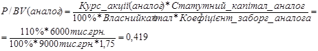 Таким чином, мультиплікатор ціна підприємства/балансова вартість (Р/BV) для підприємства – аналога розраховується за формулою: