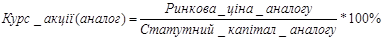 Використовуючи отриманий мультиплікатор (Р/BV) для аналога та вихідні дані для оцінюємого підприємства, розраховуємо ринковий курс акції (в відсотках до номіналу) оцінюємого підприємства за формулою: