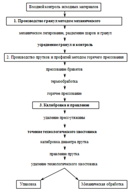 Начальник ППИ Н.В.Данилов 1.3 Основные причины снижения производительности труда В результате проведенного анализа были выявлены следующие причины снижения производительности труда: Основной причиной является изготовление в текущем периоде изделий, запланированных в производственной программе предыдущего. Технологические не состыковки. В цехе наблюдается частое обновление номенклатуры продукции (3-5 новых изделий ежемесячно). Опытно-промышленная партия составляет до 1000 шт., а объем производства от 10000 до50 000 шт. Точно определить технологические параметры производства 1000 изделий для производства 10000-50000 изделий очень трудно. Иногда деталь при таком большом объеме просто «не идет». Предприятие в основном оснащено отечественным оборудованием, надежность которого не всегда соответствует требованиям производства. Чем больше партия изготавливаемых изделий, тем чаще оборудование выходит из строя. Человеческий фактор также оказывает влияние на сбои в выполнении производственной программы. Отгулы, прогулы, невыходы по болезни, всевозможные внеплановые переходы на другие рабочие места не учитываются при формировании производственной программы, так как их невозможно предусмотреть. Еще одним важным фактором является невыполнение норм, которое может быть следствием поломки оборудования или завышенных норм. Поломка оснастки из-за дефектности, из-за выработки своего ресурса, из-за неопытности, халатности наладчиков. Изготовление и поставка новой оснастки требует больших финансовых и временных затрат. Некоторое несоответствие технологических параметров изделия технологическим параметрам производства. Предположительно, оказывает влияние «узкое место» производства. Для устранения или снижения влияния этих причин на сбои в производительность труда необходима хорошая отработка изготовления изделий; увеличение серийности производства, внедрение автоматизированных рабочих мест; создание резервов при формировании производственной программы и т.п. 2. Мероприятия по увеличению производительности труда и их экономическая эффективность 2.1 Выявление «узкого места» производства и предложения по решению проблемы его расширения В настоящее время планируется ввести в эксплуатацию участок по производству прессованных прутков и профилей. Ввод этого участка позволит цеху производить электротехнические изделия из своего сырья. Технологический процесс производства прессованных прутков и профилей выглядит следующим образом (схема 5): Производство гранул дисперсно-упрочненной меди методом механического легирования: приготовление шихты заключается, в основном, во взвешивании составляющих шихту компонентов на соответствующем оборудовании. Все компоненты шихты ссыпаются в один общий металлический противень и транспортируются на участок механического легирования; механическое легирование включает в себя: загрузку реактора, установку его в аттритор, выгрузка реактора из аттритора, закрепление на кантователе и пересыпание на сито, отделение шаров от гранул, транспортировка гранул к участку усреднения в накопительный контейнер; усреднение и контроль свойств гранул заключается в перемешивании, определении гранулометрического состава и насыпной плотности (в смесителе должно быть не менее 100 кг. гранул); Производство пр